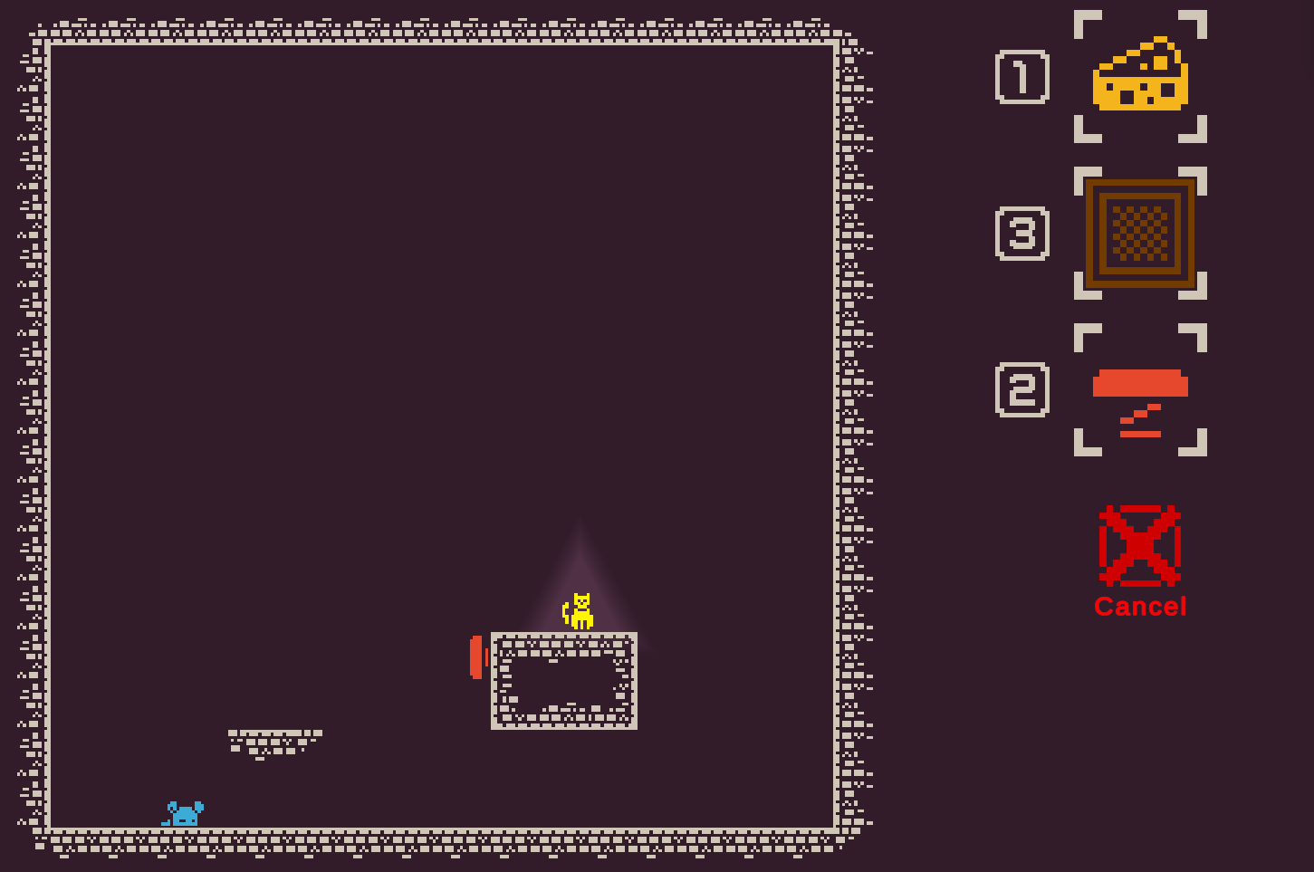 A 48h gamejam game. You have to lure the cat towards the cheese by strategically placing physics objects.